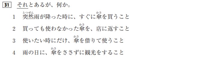 | [JLPT] N3 독해 예제 풀이 (문제4) (0) | 2021.04.11 |